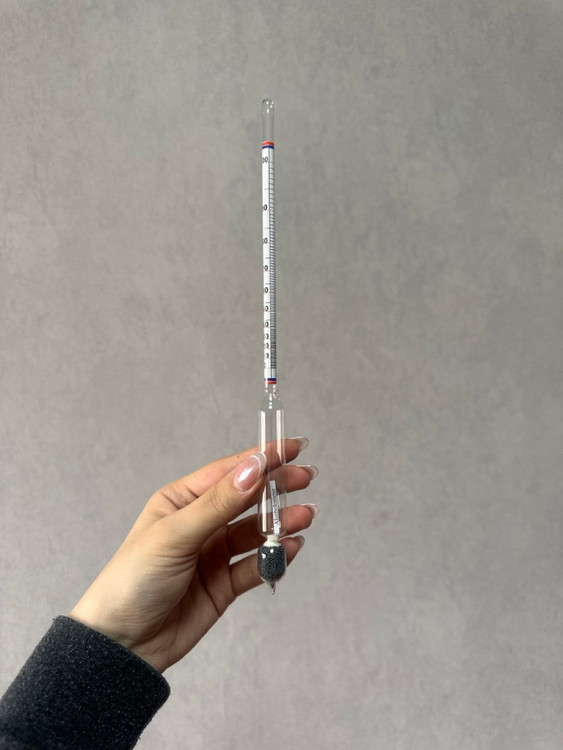 - طریقه استفاده: ابتدا مایع مورد نظر را در ظرف شفاف ریخته و سپس الکلسنج را به آرامی در آن غوطهور میکنند. بعد از چند ثانیه، مقدار درصد الکل روی مقیاس دستگاه خوانده میشود.
